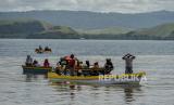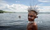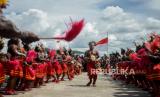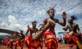REPUBLIKA.CO.ID, JAYAPURA -- Sejumlah warga menari tarian adat saat menyambut kedatangan api PON di Dermaga Kalkhote, Danau Sentani, Kabupaten Jayapura, Papua, Sabtu (2/10/2021). Api PON Papua tiba di Kabupaten Jayapura untuk nantinya dibawa ke Stadion Lukas Enembe untuk upacara penyalaan Kaldron pada pembukaan PON Papua.