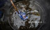 Perajin saat melakukan proses pelorodan kain batik buatan peserta di Kampung Batik Cibuluh, Kota Bogor, Jawa Barat, Sabtu (2/10). Kampung Batik Cibuluh menggelar kegiatan belajar membatik dalam rangka memperingati Hari Batik Nasional sekaligus untuk mengenalkan dan melestarikan salah satu warisan budaya dunia tersebut. Republika/Putra M. Akbar (FOTO : Republika/Putra M. Akbar)
