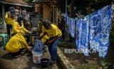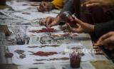 Peserta saat belajar membuat batik di Kampung Batik Cibuluh, Kota Bogor, Jawa Barat, Sabtu (2/10). Kampung Batik Cibuluh menggelar kegiatan belajar membatik dalam rangka memperingati Hari Batik Nasional sekaligus untuk mengenalkan dan melestarikan salah satu warisan budaya dunia tersebut. Republika/Putra M. Akbar (FOTO : Republika/Putra M. Akbar)