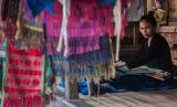 REPUBLIKA.CO.ID, LEBAK -- Warga Suku Baduy menenun kain di Kampung Kaduketug, Lebak, Banten, Sabtu (2/10/2021). Menurut pelaku usaha setempat penjualan kain tenun Baduy meningkat dari sebelumnya hanya menjual 2 potong kain per pekan kini dapat menjual 10 potong kain per pekan yang dijualnya dengan harga Rp250 ribu per potong hingga Rp1 juta per potong.