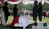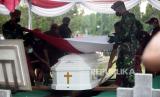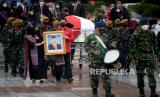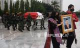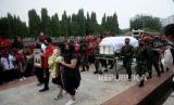 REPUBLIKA.CO.ID,JAKARTA -- Prajurit TNI membawa peti jenazah Jenazah anggota DPD RI sekaligus politikus senior Sabam Sirait untuk dimakamkan di Taman Makam Pahlawan Kalibata, Jakarta, Ahad (3/10). Sabam Sirait meniggal pada Rabu 29 September 2021 karena sakit.