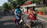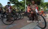 REPUBLIKA.CO.ID,SURABAYA -- Anggota komunitas sepeda tua Senopati berpakaian batik bersiap mengayuh sepedanya di Jalan Darmo, Surabaya, Jawa Timur, Ahad (3/10/2021).