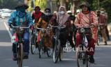 Kegiatan bersepeda bersama dengan mengenakan busana batik itu dalam rangka menyemarakkan Hari Batik Nasional.