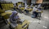 Sejumlah pelajar melaksanakan Asesmen Nasional Berbasis Komputer (ANBK) saat Pembelajaran Tatap Muka Terbatas (PTMT) di SMA Negeri 1 Kota Bogor, Jawa Barat, Senin (4/10). Sebanyak 200 sekolah tingkat SMP dan SMA di Kota Bogor melaksanakan PTMT dengan menerapkan protokol kesehatan yang ketat dan peserta didik sudah mendapatkan vaksin dosis kedua. (FOTO : Republika/Putra M. Akbar)