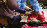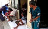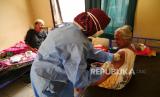 Vaksinasi Covid-19 untuk lansia dengan jemput bola di UPT Rumah Pelayanan Lansia Budi Dharma, Umbulharjo, Yogyakarta, Senin (4/10). Pelayanan vaksinasi Covid-19 dilakukan dengan sistem jemput bola. Hal ini dilakukan untuk lansia yang memiliki keterbatasan untuk pergi ke sentra vaksinasi Covid-19. Ada sembilan warga lansia yang bisa divaksinasi kali ini setelah dilakukan pemeriksaan kesehatan. (FOTO : Wihdan Hidayat / Republika)