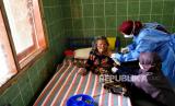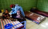 Dokter dari Dinas Kesehatan Kota Yogyakarta bersiap melakukan vaksinasi Covid-19 untuk lansia di UPT Rumah Pelayanan Lansia Budi Dharma, Umbulharjo, Yogyakarta, Senin (4/10). Pelayanan vaksinasi Covid-19 dilakukan dengan sistem jemput bola. Hal ini dilakukan untuk lansia yang memiliki keterbatasan untuk pergi ke sentra vaksinasi Covid-19. Ada sembilan warga lansia yang bisa divaksinasi kali ini setelah dilakukan pemeriksaan kesehatan. (FOTO : Wihdan Hidayat / Republika)