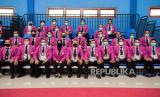 Relawan mengenakan masker saat menyaksikan pertandingan bola voli Indoor Putra di GOR Voli Indoor Koya Kosa, Kota Jayapura, Papua Senin (4/10). PON XX Papua digelar pada masa pandemi Covid-19 dengan menerapkan protokol kesehatan seperti penggunaan masker, pembatasan jumlah penonton, serta menjaga jarak di setiap arena. Republika/Thoudy Badai (FOTO : Republika/Thoudy Badai)