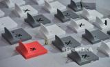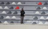 Tanda silang untuk menjaga jarak terpasang di kursi tribun penonton di GOR Voli Indoor Koya Kosa, Kota Jayapura, Papua Senin (4/10). PON XX Papua digelar pada masa pandemi Covid-19 dengan menerapkan protokol kesehatan seperti penggunaan masker, pembatasan jumlah penonton, serta menjaga jarak di setiap arena. Republika/Thoudy Badai (FOTO : Republika/Thoudy Badai)