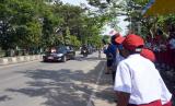 Pelajar SD mengibarkan bendera merah putih menyambut kedatangan Presiden Joko Widodo yang melintas di jalan Kota Sorong, Papua Barat, Senin (4/10/2021). Masyarakat Sorong antusias menyambut kedatangan Jokowi yang berkunjung ke Sorong dalam rangka kunjungan kerja (FOTO : ANTARA/Olha Mulalinda)