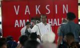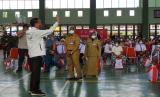 REPUBLIKA.CO.ID, SORONG -- Presiden Joko Widodo (tengah) menyapa pelajar dan warga yang mengantre untuk melakukan vaksin Covid-19 di gedung serba guna Batalyon 762 Vira Yudha Sakti di Kota Sorong, Papua Barat, Senin (4/10/2021). Presiden melakukan lawatan kerjanya di Papua Barat dengan melakuan berbagai kegiatan, diantaranya mengecek secara langsung dan virtual capaian vaksin massal COVID-19 di wilayah Papua Barat.