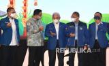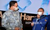 REPUBLIKA.CO.ID, BADUNG -- Ketua Umum DPP PAN Zulkifli Hasan (kanan) berbincang dengan Gubernur DKI Jakarta Anies Baswedan (kiri) saat pembukaan Workshop Nasional DPP PAN di Nusa Dua, Badung, Bali, Senin (4/10/2021).