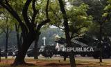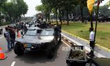 REPUBLIKA.CO.ID, JAKARTA -- Prajurit TNI menyemir ban kendaraan tempur di depan Istana Merdeka Jakarta, Senin (4/10/2021). Pameran alutsista tersebut dalam rangka menyemarakkan HUT ke-76 TNI yang diperingati setiap tanggal 5 Oktober.