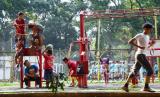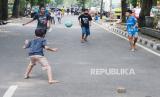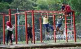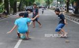 REPUBLIKA.CO.ID, BANDUNG -- Sejumlah anak bermain di kawasan Taman Ciujung, Jalan Supratman, Kota Bandung, Kamis (7/10). Di saat aturan kebijakan PPKM level 3 yang lebih longgar dan melandainya kasus Covid-19, sejumlah ruang publik di Kota bandung kembali ramai oleh aktivitas warga termasuk anak-anak. Namun sayang banyak di antaranya yang abai prokes