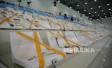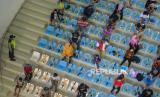 Suasana Stadion Akuatik, Kompleks Kampung Harapan, Sentani, Kanupaten Jayapura, Papua, Kamis (7/10). Setelah terjadi kasus positif saat gelaran PON XX Papua, Sejumlah venue menerapkan protokol kesehatan yang ketat seperti pembatasan maksimal kapasitas arena dan penyediaan layanan vaksin dan swab antigen untuk penonton. Republika/Thoudy Badai (FOTO : Republika/Thoudy Badai)