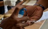 Petugas memberikan cairan pembersih tangan kepada penonton sebelum memasuki arena pertandingan di Istora Papua Bangkit, Kompleks Kampung Harapan, Sentani, Kanupaten Jayapura, Papua, Kamis (7/10). Setelah terjadi kasus positif saat gelaran PON XX Papua, Sejumlah venue menerapkan protokol kesehatan yang ketat seperti pembatasan maksimal kapasitas arena dan penyediaan layanan vaksin dan swab antigen untuk penonton. Republika/Thoudy Badai (FOTO : Republika/Thoudy Badai)