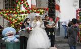 REPUBLIKA.CO.ID,JAKARTA -- Warga bersama anaknya berwisata di kawasan Kali Besar, Kota Tua, Jakarta, Sabtu (9/10/2021).