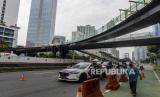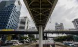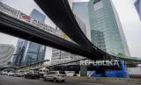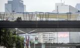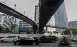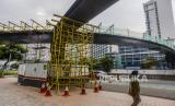 REPUBLIKA.CO.ID, JAKARTA -- Kendaraan melintas di dekat pembangunan Jembatan Kapal Pinisi di kawasan Sudirman, Jakarta, Ahad (10/10). Pemerintah Provinsi DKI Jakarta membangun jembatan yang diperuntukan bagi pejalan kaki dan sepeda yang kini progresnya sudah mencapai 70 persen
