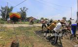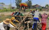 REPUBLIKA.CO.ID, INDRAMAYU -- Sejumlah anak buah kapal bergotong royong menurunkan kapal ikan yang baru selesai dibuat di desa Karangsong, Indramayu, Jawa Barat, Ahad (10/10/2021). Kementerian Kelautan dan Perikanan (KKP) memastikan perolehan Penerimaan Negara Bukan Pajak (PNBP) perikanan akan disalurkan untuk pembangunan sektor kelautan dan perikanan seperti pengembangan infrastruktur pelabuhan perikanan dan peningkatan kesejahteraan nelayan.