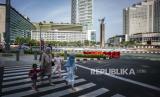 REPUBLIKA.CO.ID, JAKARTA -- Sejumlah warga berjalan di kawasan Bundaran HI, Jakarta, Minggu (10/10/2021). Aktivitas warga di kawasan tersebut relatif ramai saat penerapan Pemberlakuan Pembatasan Kegiatan Masyarakat (PPKM) di ibu kota.