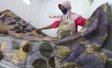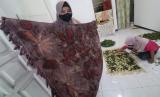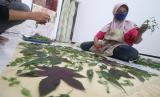 REPUBLIKA.CO.ID, KEDIRI -- Perajin menata daun pada kain katun saat proses pembuatan sajadah ecoprint di Cabhi Craft, Desa Paron, Kediri, Jawa Timur, Minggu (10/10/2021). Kerajinan sajadah dengan pewarnaan alami tersebut dipasarkan melalui media sosial seharga Rp100 ribu per lembar.
