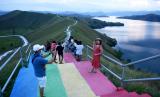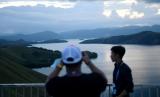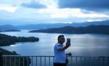 REPUBLIKA.CO.ID,JAYAPURA -- Warga menikmati pemandangan Danau Sentani di Bukit Teletubbies Kampung Doyo Lama, Distrik Waibhu, Kabupaten Jayapura, Papua, Senin (11/10/2021).