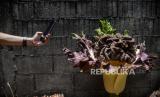 REPUBLIKA.CO.ID, JAKARTA -- Warga melihat tanaman yang diduga jenis bunga bangkai di kawasan Cipete, Jakarta, Selasa (12/10). Bunga yang tumbuh di pekarangan rumah warga itu mengeluarkan bau menyengat dan menjadi pusat perhatian warga sekitar.