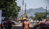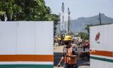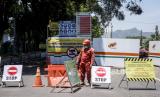 REPUBLIKA.CO.ID, CIMAHI -- Petugas kepolisian berjaga saat pengalihan arus lalu lintas akibat proyek pembangunan underpass Sriwijaya - Cimahi di Jalan Sriwijaya Raya, Kota Cimahi, Selasa (12/10). Pembangunan underpass dengan panjang 600 meter dan lebar 9 meter tersebut untuk mengurai kemacetan di kawasan tersebut dan ditargetkan rampung pada akhir tahun 2021.