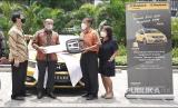 Co-Branding Maybank - Direktur Community Financial Services PT Bank Maybank Indonesia Tbk (Maybank Indonesia), Steffano Ridwan (kedua kiri) menyerahkan hadiah utama program Co-Branding Maybank Finance tahap pertama kepada Nasabah Maybank Indonesia kantor cabang induk Bandar Lampung, Hendra Kusuma (kedua kanan), didampingi Presiden Direktur Maybank Finance, Alexander Tan (kiri) di kantor pusat Maybank Indonesia, Senayan, Jakarta (12/10). Program Undian Tabungan Co-Branding Maybank Finance menawarkan hadiah istimewa berupa unit mobil dan emas. Program ini terbagi dalam dua periode, dimana periode selanjutnya akan dilakukan pada 1 September 2021 – 28 Februari 2022. (FOTO : Maybank)