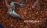 Petani memasukkan biji kakao ke dalam karung usai dijemur di Desa Salua, Kulawi, Sigi, Sulawesi Tengah, Senin (11/10/2021). Kemenko Perekonomian merilis, Indonesia dinobatkan sebagai negara produsen kakao terbesar ke-6 di dunia setelah pada 2020 produksi kakao nasional mencapai 713.000 ton dengan luas areal kakao 1.528 hektare dan produktivitas 706 kg per hektare. (FOTO : Antara/Basri Marzuki)