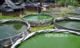 REPUBLIKA.CO.ID,BOGOR -- Peternak menunjukkan ikan nila merah bangkok yang dibudidayakan di MinaB Agribisnis, Cikaret, Kota Bogor, Jawa Barat, Selasa (12/10/2021).