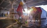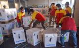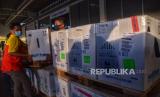 REPUBLIKA.CO.ID,DELI SERDANG -- Petugas menyusun paket berisi vaksin Pfizer setibanya di Terminal Cargo Bandara Kualanamu, Deli serdang, Sumatera Utara, Selasa (12/10/2021).