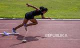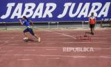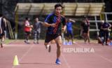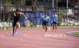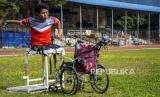 Atlet lari sprint jarak 100 meter National Paralympic Comittee Indonesia (NPCI) Jawa Barat mengikuti latihan di GOR Pajajaran, Kota Bandung, Rabu (13/10). Latihan tersebut sebagai persiapan Pekan Paralimpik Nasional (Peparnas) XVI di Papua pada November 2021 mendatang. Foto: Republika/Abdan Syakura (FOTO : REPUBLIKA/ABDAN SYAKURA)