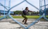 Atlet lempar cakram National Paralympic Comittee Indonesia (NPCI) Jawa Barat Een F mengikuti latihan di GOR Pajajaran, Kota Bandung, Rabu (13/10). Latihan tersebut sebagai persiapan Pekan Paralimpik Nasional (Peparnas) XVI di Papua pada November 2021 mendatang. Foto: Republika/Abdan Syakura (FOTO : REPUBLIKA/ABDAN SYAKURA)