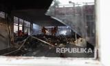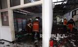 REPUBLIKA.CO.ID, SURABAYA -- Petugas Dinas Pemadam Kebakaran Kota Surabaya melakukan pembasahan ruangan yang terbakar di kompleks Kantor Kementerian Pekerjaan Umum dan Perumahan Rakyat Jalan Gayung Kebonsari No 50, Surabaya, Jawa Timur, Rabu (13/10/2021).