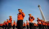 Petugas Badan Penanggulangan Bencana Daerah (BPBD) DKI Jakarta mengikuti Apel Kesiapsiagaan Menghadapi Musim Hujan Tingkat Provinsi DKI Jakarta, di Silang Selatan Monas, Jakarta, Rabu (13/10/2021). Apel gabungan tersebut diikuti oleh 1.458 peserta yang terdiri dari unsur TNI, Polri, BPBD DKI Jakarta, unsur Pemprov DKI, dan relawan tanggap bencana. (FOTO : Antara/Aprillio Akbar)