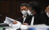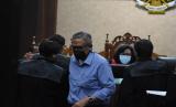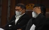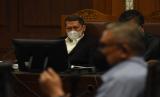 REPUBLIKA.CO.ID,JAKARTA -- Terdakwa mantan Direktur Utama PT Pelindo II Richard Joost Lino (kiri) mendengarkan keterangan saksi pada sidang lanjutan kasus korupsi pengadaan tiga unit Quay Container Crane (QCC) di PT Pelindo II pada tahun 2010, di Pengadilan Tipikor, Jakarta, Rabu (13/10/2021).