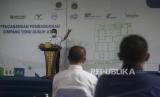 Gubernur DKI Jakarta Anies Baswedan memberikan sambutan saat peresmian pembangunan Simpang Temu Dukuh Atas di Jakarta, Rabu (13/10). Pemerintah Provinsi DKI Jakarta memulai pembangunan Simpang Temu Dukuh Atas yang merupakan area transit yang mempertemukan sejumlah moda transportasi umum dan ditargetkan rampung pada Juni 2022. Republika/Putra M. Akbar (FOTO : Republika)