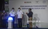 Gubernur DKI Jakarta Anies Baswedan (ketiga kiri) bersama Direktur Utama PT MRT Jakarta William Sabandar (ketiga kanan) saat peresmian pembangunan Simpang Temu Dukuh Atas di Jakarta, Rabu (13/10). Pemerintah Provinsi DKI Jakarta memulai pembangunan Simpang Temu Dukuh Atas yang merupakan area transit yang mempertemukan sejumlah moda transportasi umum dan ditargetkan rampung pada Juni 2022. Republika/Putra M. Akbar (FOTO : Republika/Putra M. Akbar)