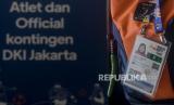 Kartu peserta milik atlet DKI Jakarta yang terpasang di tas setibanya di Hotel Grand Cempaka Business, Jakarta, Kamis (14/10). Pemerintah Provinsi DKI Jakarta telah menyiapkan dua fasilitas isolasi terpusat di Hotel Grand Cempaka Business dan D Arcici Sunter Hotel untuk atlet dan ofisial kontingen DKI Jakarta yang akan menjalani karantina selama lima hari sepulangnya dari perhelatan Pekan Olahraga Nasional (PON) XX Papua. (FOTO : Republika/Putra M. Akbar)