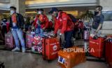 Sejumlah atlet dan ofisial dari DKI Jakarta tiba untuk menjalani karantina di Hotel Grand Cempaka Business, Jakarta, Kamis (14/10). Pemerintah Provinsi DKI Jakarta telah menyiapkan dua fasilitas isolasi terpusat di Hotel Grand Cempaka Business dan D Arcici Sunter Hotel untuk atlet dan ofisial kontingen DKI Jakarta yang akan menjalani karantina selama lima hari sepulangnya dari perhelatan Pekan Olahraga Nasional (PON) XX Papua. (FOTO : Republika/Putra M. Akbar)