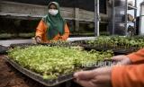 REPUBLIKA.CO.ID, BANDUNG -- Warga merawat benih sayur di kebun Buruan SAE (Pekarangan Sehat, Alami dan Ekonomis) yang sudah terintegrasi dengan panel surya di komplek perumahan De Marrakesh, Jalan Ciwastra, Rancasari, Kota Bandung, Kamis (14/10).