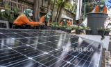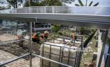 Warga merawat benih sayur di kebun Buruan SAE (Pekarangan Sehat, Alami dan Ekonomis) yang sudah terintegrasi dengan panel surya di komplek perumahan De Marrakesh, Jalan Ciwastra, Rancasari, Kota Bandung, Kamis (14/10). Warga di perumahan tersebut berinisiatif untuk melakukan inovasi cara berkebun di pekarangan dengan menggunakan panel surya sebagai sumber energi lampu penerangan serta menghidupkan pompa air guna mengairi perkebunan. Foto: Republika/Abdan Syakura (FOTO : REPUBLIKA/ABDAN SYAKURA)