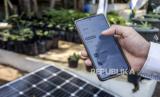 Warga menunjukkan aplikasi untuk mengatur jadwal penyiraman dan kontrol lampu di kebun Buruan SAE (Pekarangan Sehat, Alami dan Ekonomis) yang sudah terintegrasi dengan panel surya di komplek perumahan De Marrakesh, Jalan Ciwastra, Rancasari, Kota Bandung, Kamis (14/10). Warga di perumahan tersebut berinisiatif untuk melakukan inovasi cara berkebun di pekarangan dengan menggunakan panel surya sebagai sumber energi lampu penerangan serta menghidupkan pompa air guna mengairi perkebunan. (FOTO : REPUBLIKA/ABDAN SYAKURA)