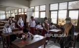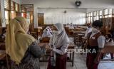 REPUBLIKA.CO.ID, BANDUNG -- Petugas kesehatan melakukan tes usap antigen ke pelajar di SDN 015 Kresna, Cicendo, Kota Bandung, Jumat (15/10). Pemerintah Kota Bandung melalui Dinas Kesehatan Kota Bandung dan Dinas Pendidikan Kota Bandung melakukan tes usap antigen secara acak bagi pelajar di sejumlah sekolah untuk memastikan kesehatan siswa dan mencegah terjadinya klaster penyebaran Covid-19 di sekolah selama Pembelajaran Tatap Muka Terbatas (PTMT).