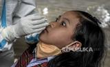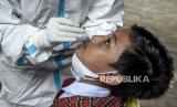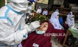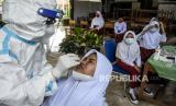 REPUBLIKA.CO.ID, BANDUNG -- Petugas kesehatan melakukan tes usap antigen ke pelajar di SDN 015 Kresna, Cicendo, Kota Bandung, Jumat (15/10). Pemerintah Kota Bandung melalui Dinas Kesehatan Kota Bandung dan Dinas Pendidikan Kota Bandung melakukan tes usap antigen secara acak bagi pelajar di sejumlah sekolah untuk memastikan kesehatan siswa dan mencegah terjadinya klaster penyebaran Covid-19 di sekolah selama Pembelajaran Tatap Muka Terbatas (PTMT).