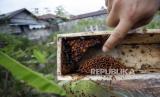REPUBLIKA.CO.ID,BALIKPAPAN -- Agustinus Gabriel pemilik UMKM madu Lun Tau Balikpapan memanen madu lebah kelulut di Balikpapan, Kalimantan Timur, Jumat (15/10/2021).