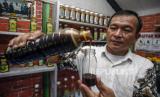 Agustinus Gabriel pemilik UMKM madu Lun Tau Balikpapan mengemas madu lebah kelulut di Balikpapan, Kalimantan Timur, Jumat (15/10/2021). Madu Lun Tau mitra UMKM binaan Pertamina tersebut dijual dengan kisaran harga Rp57.000 hingga Rp500.000 sesuai ukuran, dan dipasarkan keseluruh kota-kota besar di Indonesia. (FOTO : ANTARA/Yulius Satria Wijaya)