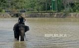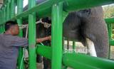 REPUBLIKA.CO.ID, LAMPUNG -- Petugas menanggani gajah yang sakit di rumah sakit gajah Taman Nasional Way Kambas (TNWK) Lampung Timur, Lampung, Jumat (15/10). Taman Nasional Way Kambas yang merupakan tempat wisata menarik baik untuk wisatawan lokal maupun asing saat ini masih ditutup untuk umum karena pandemi covid-19.