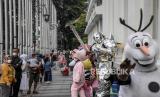 REPUBLIKA.CO.ID, BANDUNG -- Sejumlah warga berwisata di kawasan Asia Afrika, Kota Bandung, Ahad (17/10). Kawasan Asia Afrika yang kerap menjadi area wisata bagi warga terlihat ramai saat akhir pekan, seiring dengan menurunnya angka kasus Covid-19 dan level status Pemberlakuan Pembatasan Kegiatan Masyarakat (PPKM) di Kota Bandung yang saat ini menjadi Level 3.