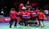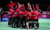 REPUBLIKA.CO.ID, DENMARK -- Indonesia berhasil menjadi juara Thomas Cup setelah mengalahkan China di babak final yang diselenggarakan di Ceres Arena, Denmark, Ahad (17/10).